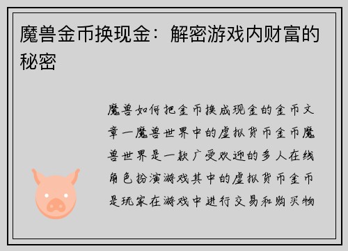 魔兽如何用秘籍 介绍 魔兽是一款备受欢迎的在线游戏,拥有庞大的游戏世界和丰富的游戏内容。在游戏中,玩家可以通过使用秘籍来获得一些特殊的能力或优势。本文将详细介绍魔兽中如何使用秘籍来提升游戏体验。 1....